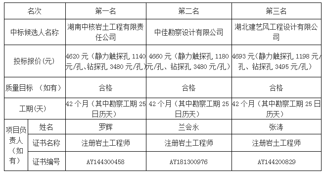 松滋市金投•新城印象建設(shè)項(xiàng)目勘察于2020年4月26日發(fā)出招標(biāo)邀請(qǐng),2020年5月7日在湖北松滋金松投資控股集團(tuán)有限公司開(kāi)評(píng)標(biāo)室開(kāi)標(biāo),并于2020年5月7日完成評(píng)標(biāo)工作。根據(jù)評(píng)標(biāo)委員會(huì)提交的評(píng)標(biāo)報(bào)告,湖北松滋金投置業(yè)有限公司已經(jīng)確認(rèn)評(píng)標(biāo)結(jié)果,現(xiàn)進(jìn)行評(píng)標(biāo)結(jié)果公示。